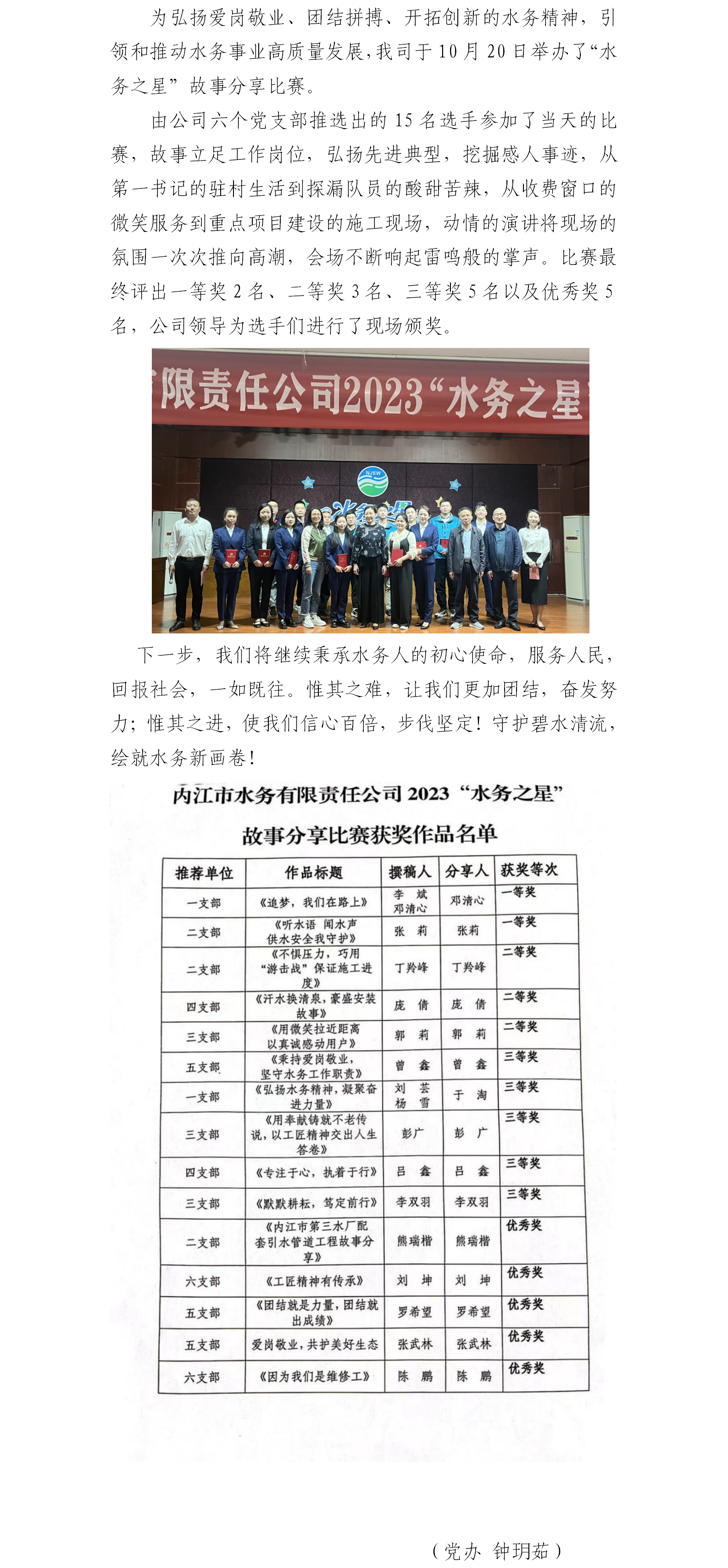 分享敬業故事 共鑄水務輝煌