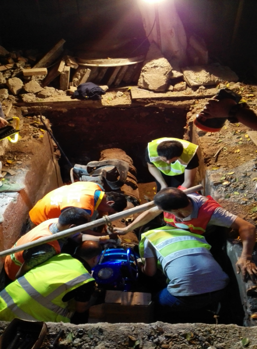 在管網規劃管理部、物資供應部、豪盛管道安裝公司及工會等部門的緊密配合下,5月17日晚22時,管網運行部按改造實施方案對平安路兩側3臺蝶閥進行了更換。為縮短停水時間,施工前管網運行部組織召開了兩次施工分析會,制定了工作方案,并對施工現場提前組織開挖,設置安全圍擋、照明等安全設施,為順利實施蝶閥更換做好充分準備。施工中,維修人員們克服深夜疲勞、操作場地狹小等不利因素,特別是楊孝成,鄧軼峰、劉超、程建軍等冒著高溫天氣及氧焊的熱浪,在弱電管線交錯縱橫的狹窄空間里拆卸生銹螺栓,安裝更新蝶閥。經過7個多小時連續作業,在18日凌晨5時順利完成此次改造工作,比預期通水時間提前1個小時,保證了周邊用戶正常用水。