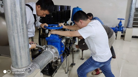 9月17日下午,豪鵬二供公司巡查人員在開(kāi)展計(jì)劃性設(shè)備巡檢時(shí),在公園一號(hào)小區(qū)泵房?jī)?nèi)發(fā)現(xiàn)加壓設(shè)備出現(xiàn)重大安全隱患,即高區(qū)加壓設(shè)備出水橫管出現(xiàn)嚴(yán)重傾斜和管道卡箍產(chǎn)生部分位移,造成與管道相連的柔性接頭存在隨時(shí)破裂漏水可能。在泵房隔壁就是整個(gè)小區(qū)配電室,如泵房?jī)?nèi)管道漏水將直接對(duì)配電室造成威脅。面對(duì)險(xiǎn)情,豪鵬公司立即組織技術(shù)人員進(jìn)行搶修,于當(dāng)晚10:30成功消除安全隱患。此次搶修工作得到豪盛安裝公司的大力支持和配合。